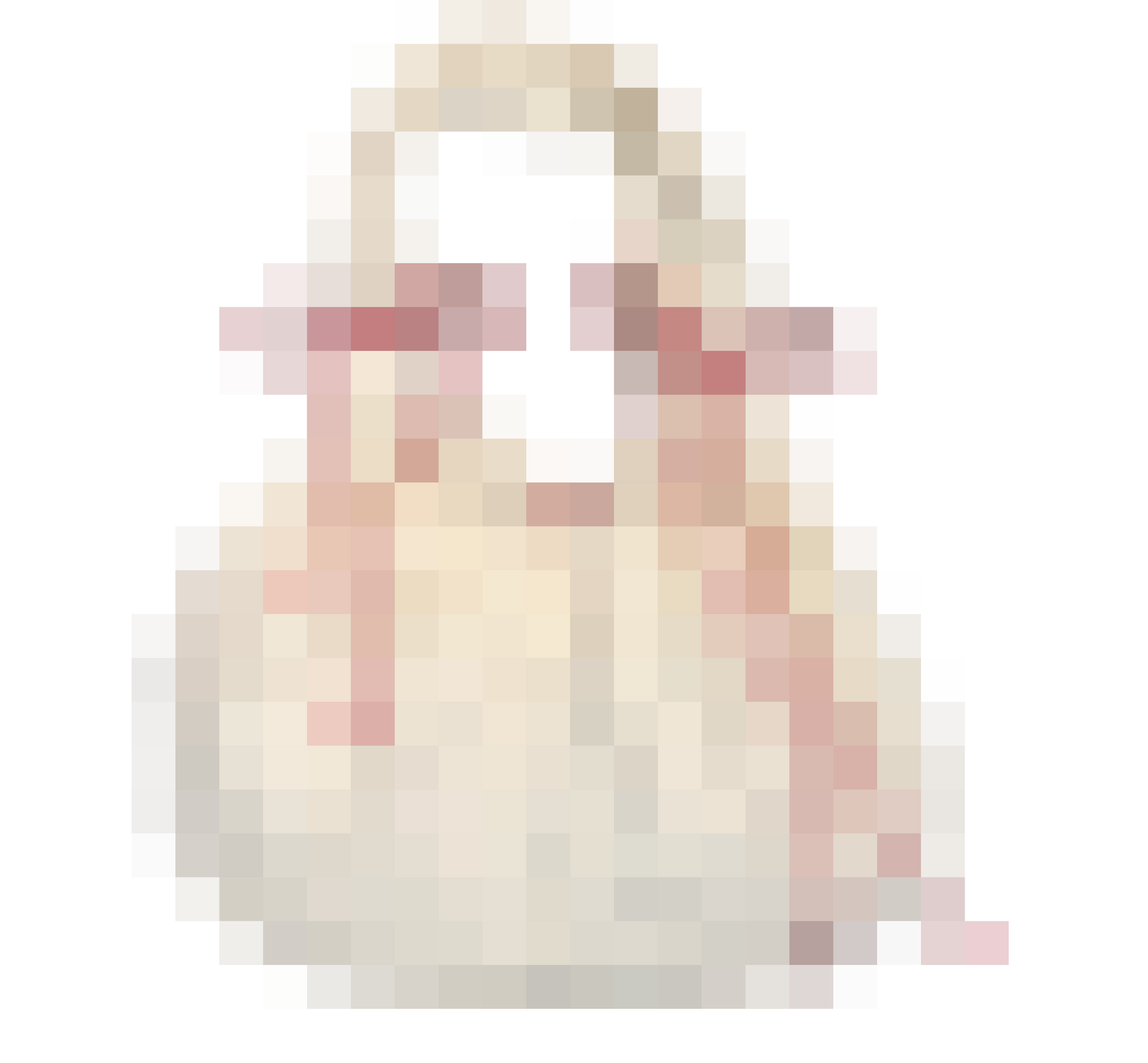 The Mei Bag, made from soft nylon, is designed with a magnetic closure and two internal pockets, including one with a zipper. The exterior is detailed with dual cords with a cross feature and cinch the opening for a gathered effect.